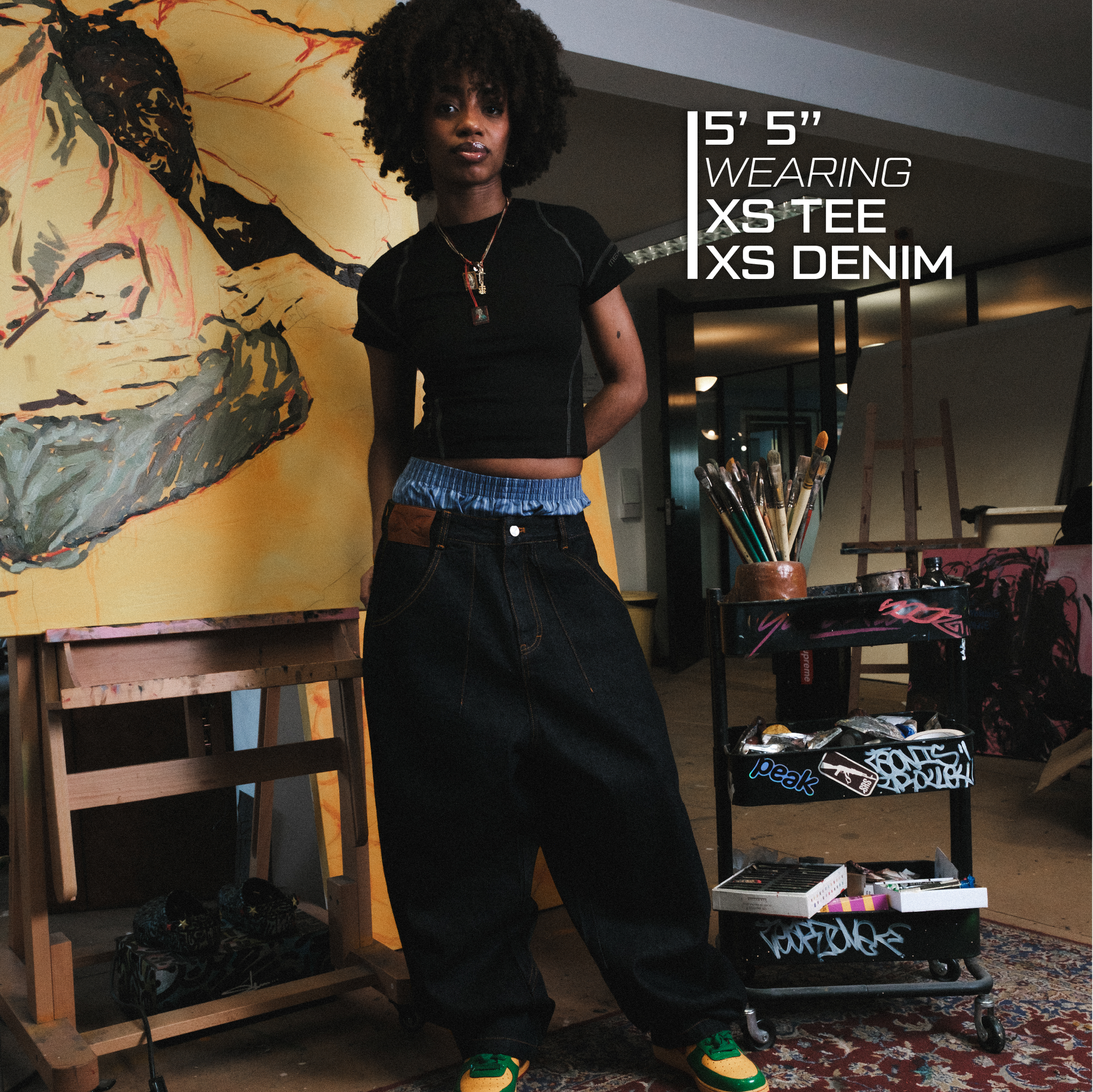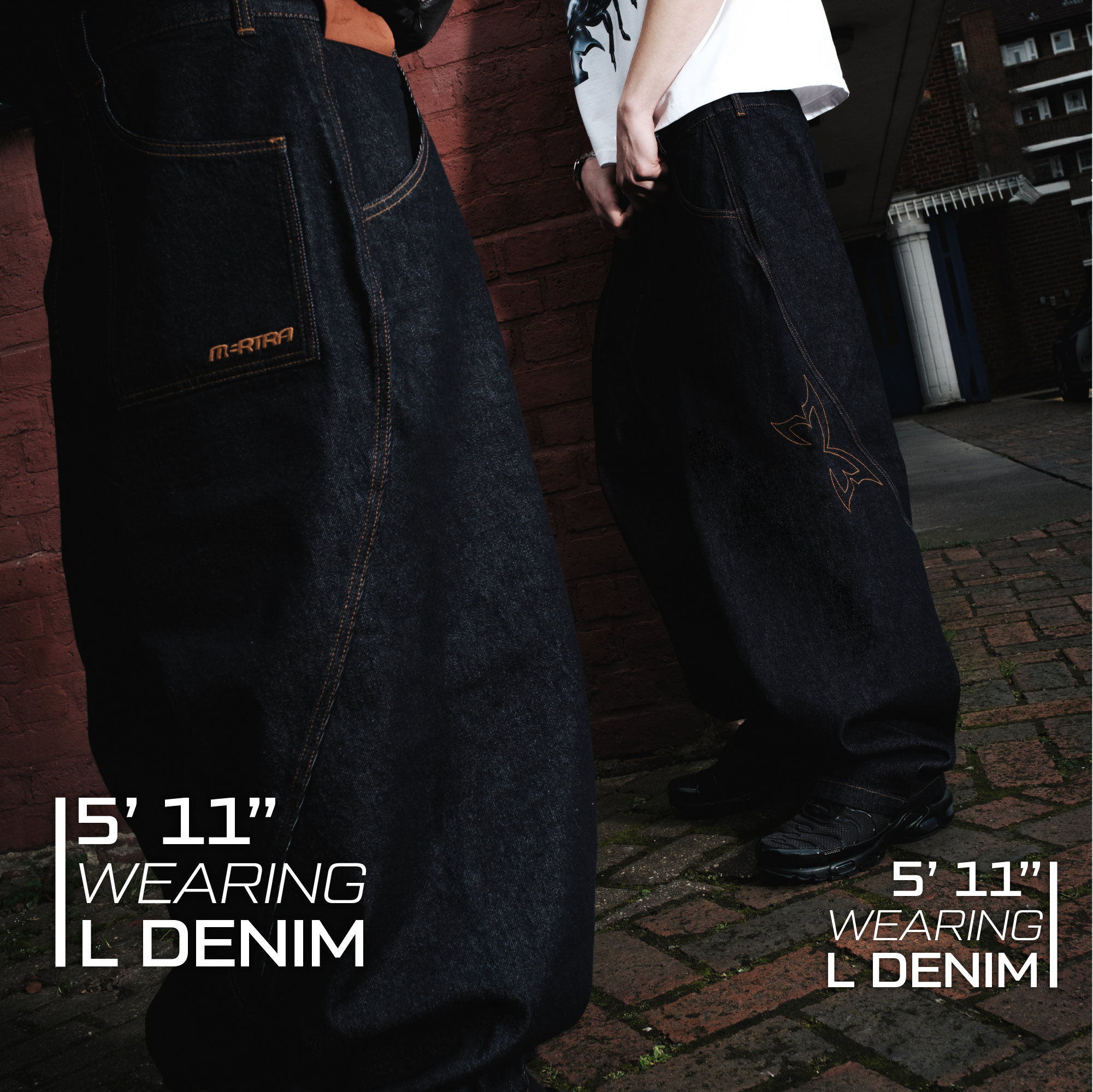 - Baggy, wide leg fit